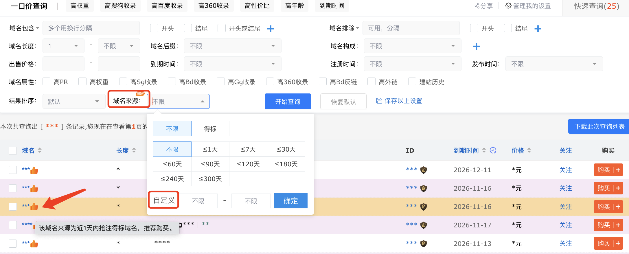 域名来源为得标(30天内),将自动显示推荐图标。以系统最新一次记录为准。